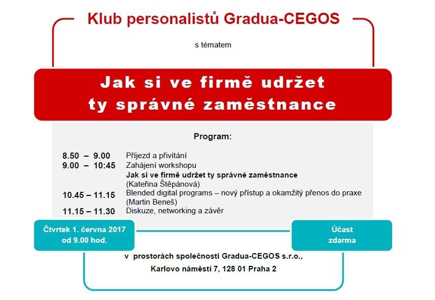 rády bychom Vás pozvaly na červnové setkání Klubu personalistů Gradua-CEGOS, které se uskuteční 1. června od 9 hod. na téma